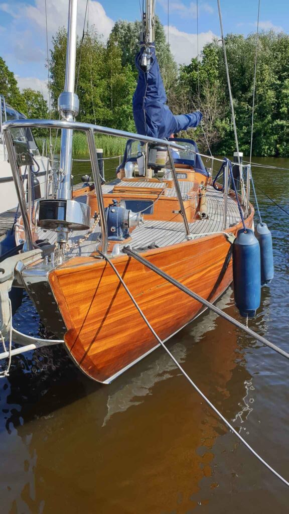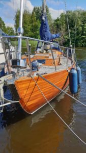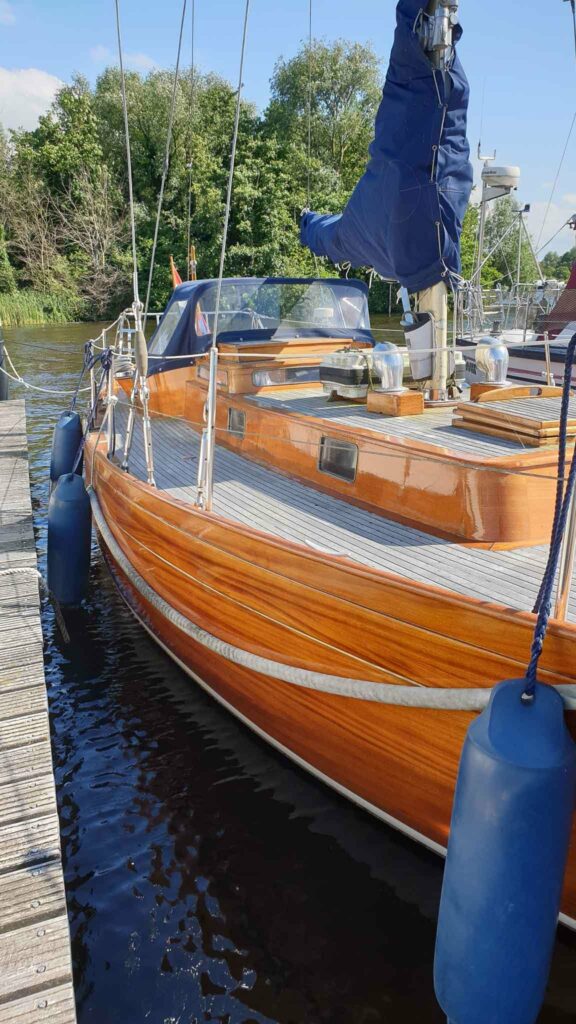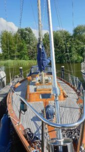 S/Y Eliza was built in 1971 at the Böbst Werft in Northern Germany to the national KR rating rule. The rule was developped by Henry Rasmussen, to create a class of seaworthy club racers, very close to the RORC rating rule and proved to be very successfull. Measuring 6KR, Eliza was built from Mahogany and Teak with a casted lead keel, the hull planking was made from Mahogany. She is a beautiful cruiser, equipped for extensive sailing vacations for a family crew and can easily be the winning boat in the next classic or club race she enters. Eliza sports a aluminum mast, boom and spinnaker boom with a total of 46m² of sails upwind.