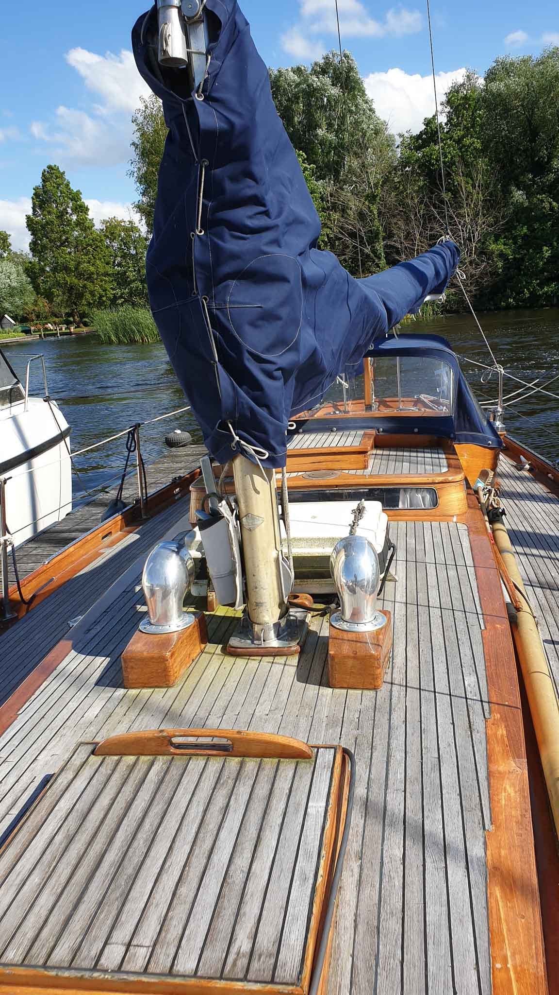 Eliza has a beautiful mahogany interior in a typical 1970´s style with varnished mahogany surfaces and furniture made from plywood and solid timber. The floorboards are made from varnished mahogany as well.